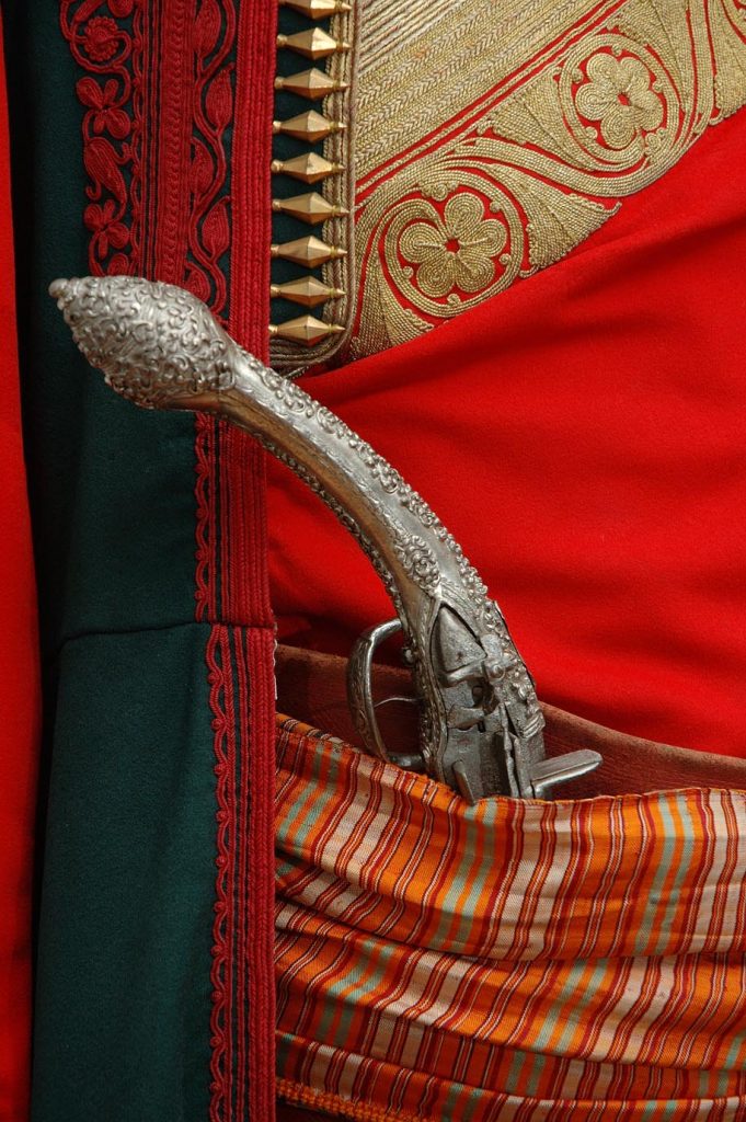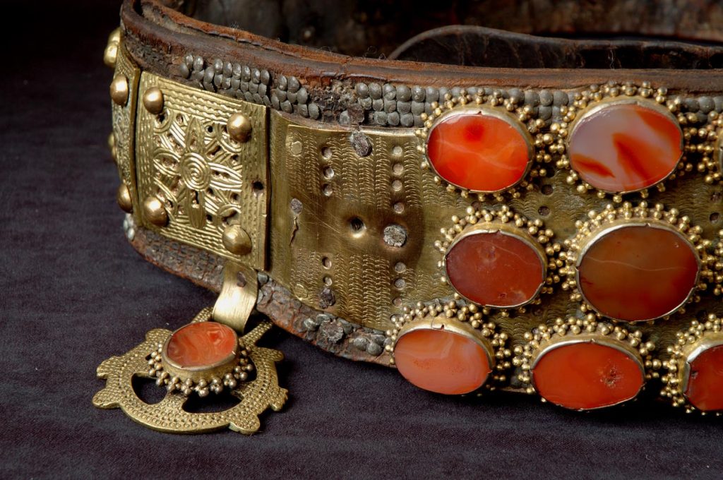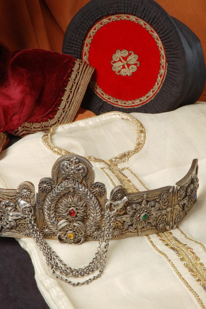Izloženi ženski nakit predstavlja vrhunska ostvarenja filigranskog zanatstva. Ovdje spadaju broševi, pozlaćeni detalji za grudi, srebrni pojasevi, posebno ženski pojasevi ćemeri, kao i muške srebrne toke rađene tehnikom livenja i kovanja i ukrašavane floralnim motivima u različitim tehnikama. Nakit je, kao i nošnje i oružje, izrađivan u većim gradskim centrima kao što su Podgorica, Skadar, Kotor.